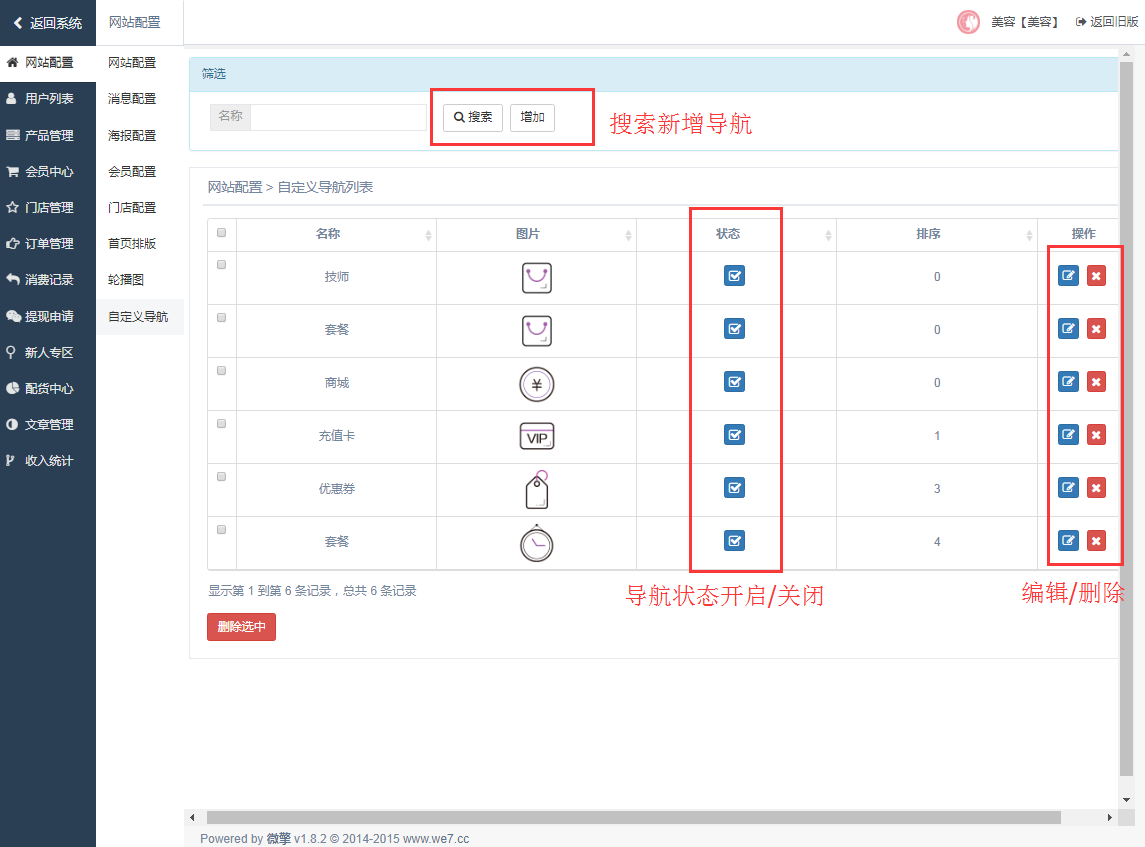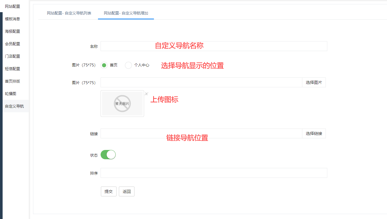 ### 导航后台列表  ### 自定义导航添加  ### 手机端位置演示