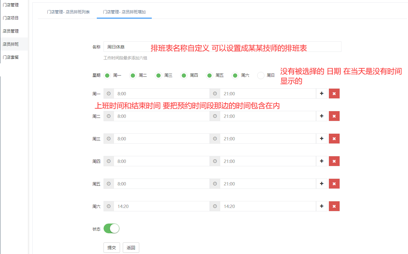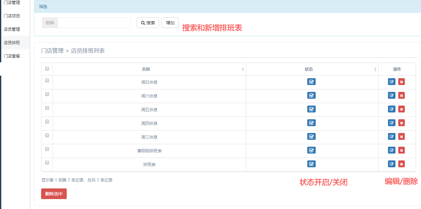 门店管理---店员排班