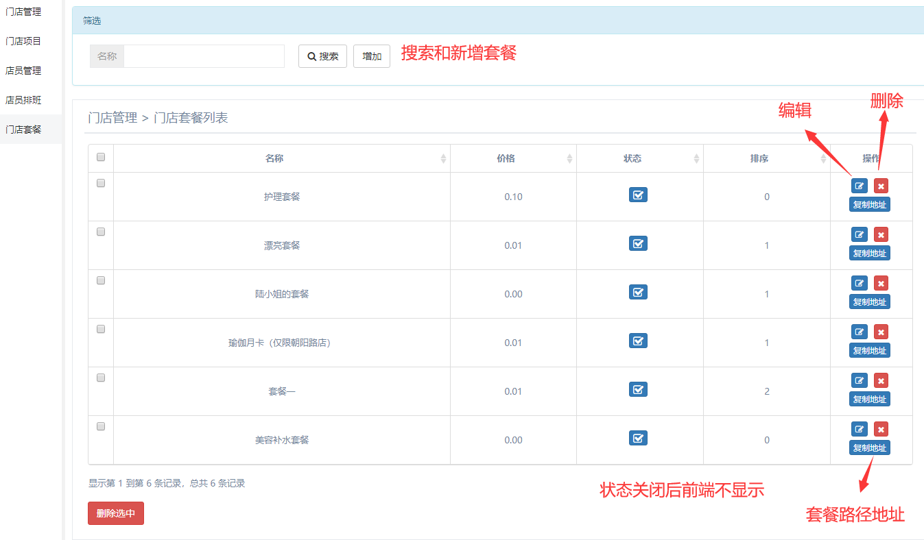 ### 门店套餐门店套餐 套餐里面使用的项目是门店项目 不是服务项目 套餐列表  ### 新增套餐