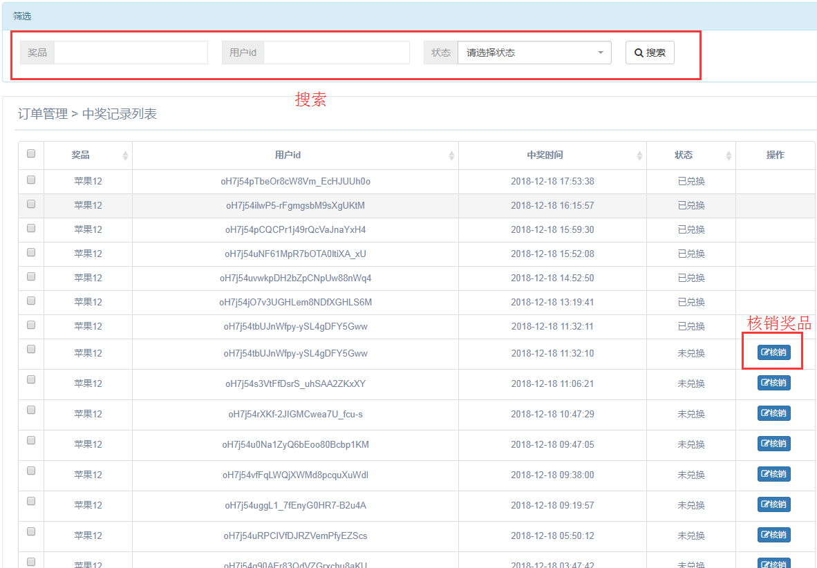 订单管理---中奖记录
