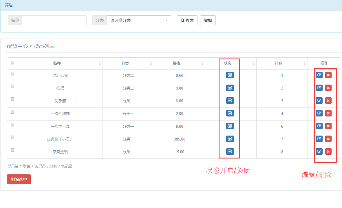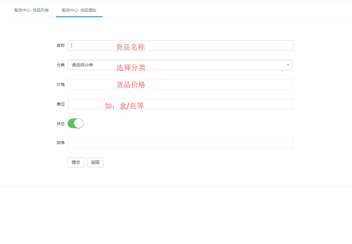 ### 主店给分店配货的货品 #### 货品列表  ### 增加货品