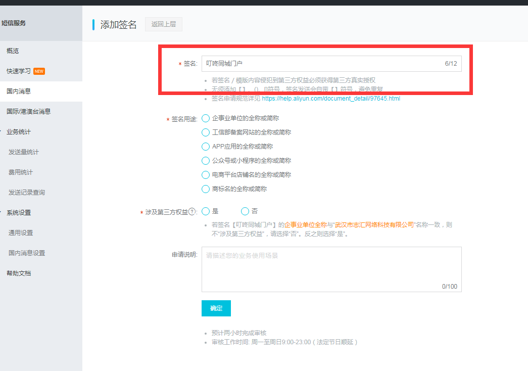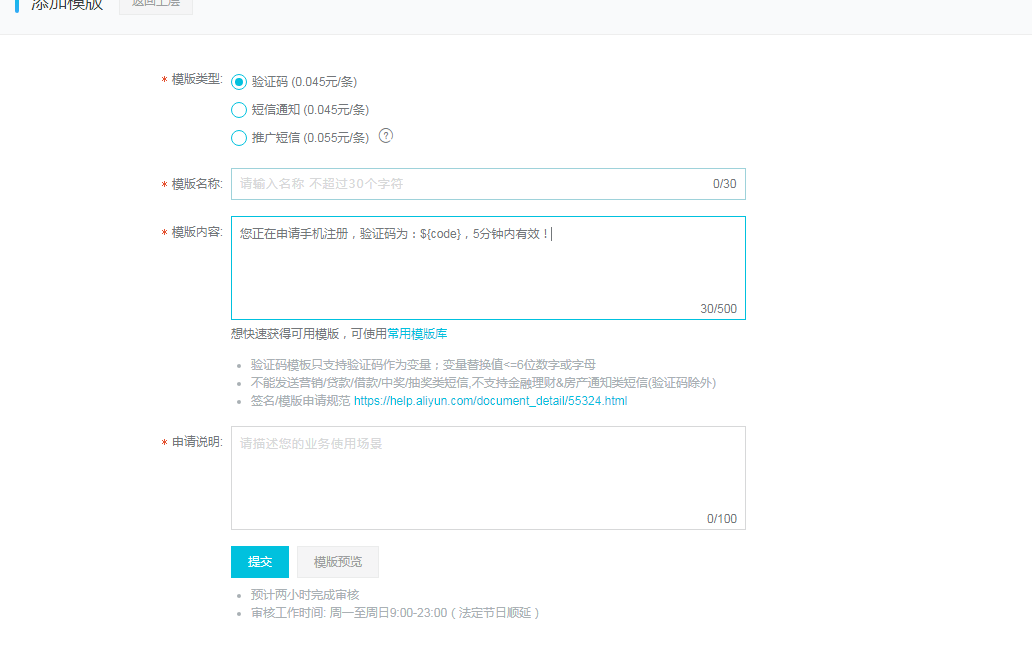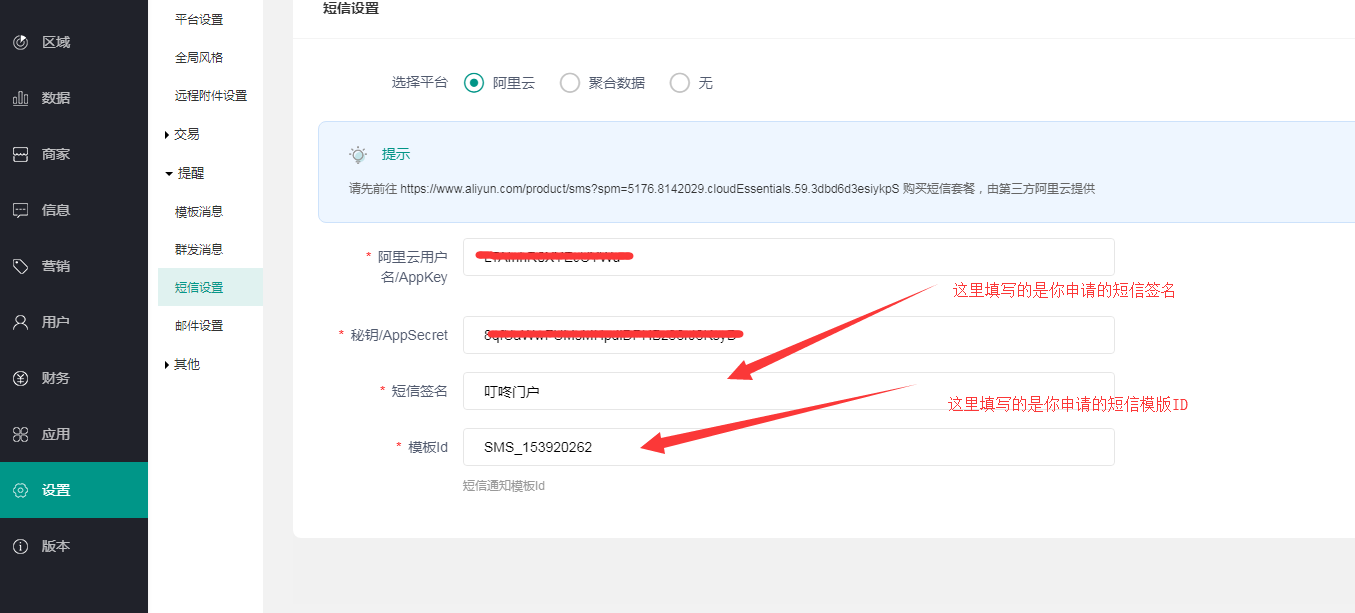 阿里云短信配置