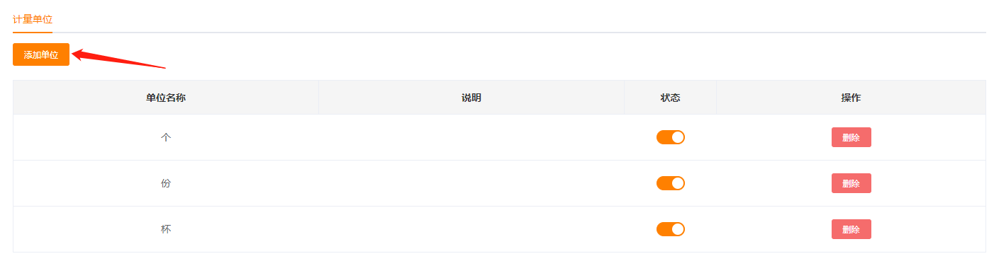 功能路径:后台>>商品>>计量单位>>添加单位 功能介绍: 计量单位,即顾客在购买普通商品时用的计数单位。例如一碗牛肉面,一杯奶茶、一件衣服等,碗,杯,件即是计量单位。 功能设置:   计量单位设置好之后,在上传商品的页面,可以选择当前商品适合的单位