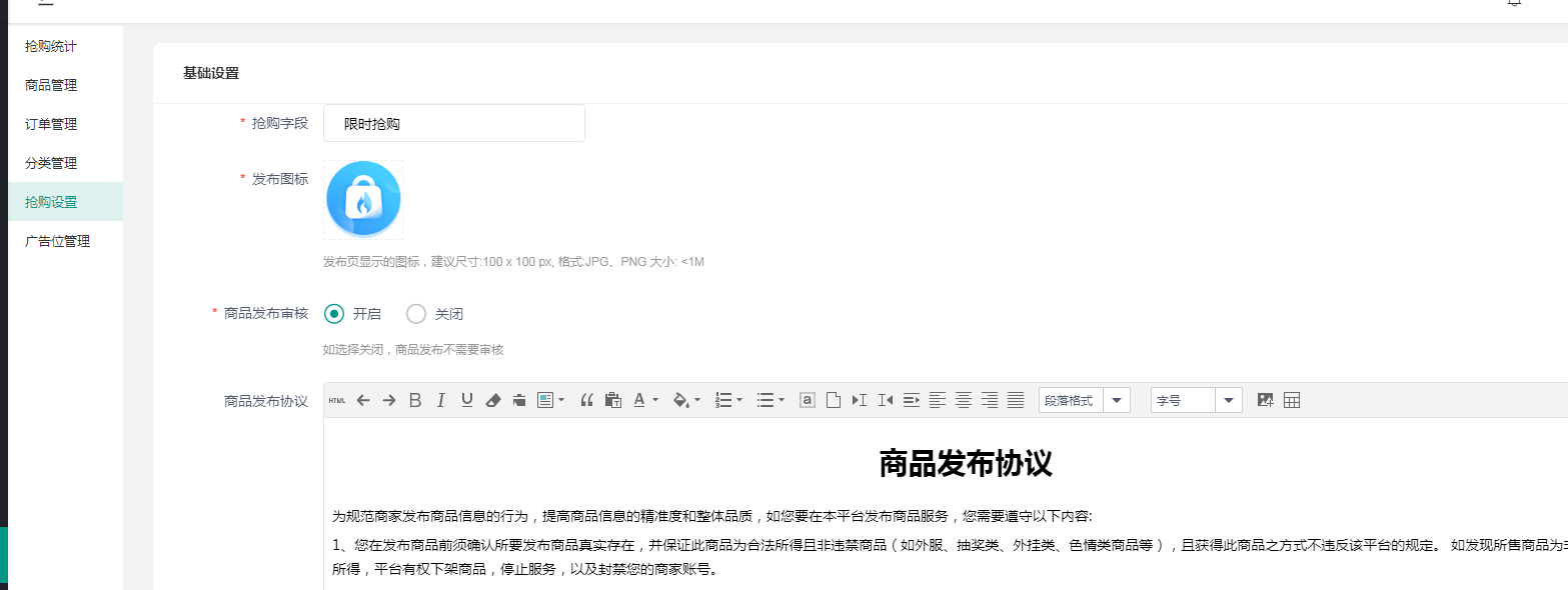 ### 抢购设置  抢购字段可自定义,其他设置不多
