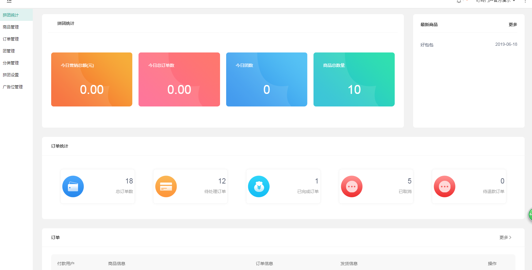 ### 拼团统计  拼团功能,和拼团多多差不多,一个商品几个人团购