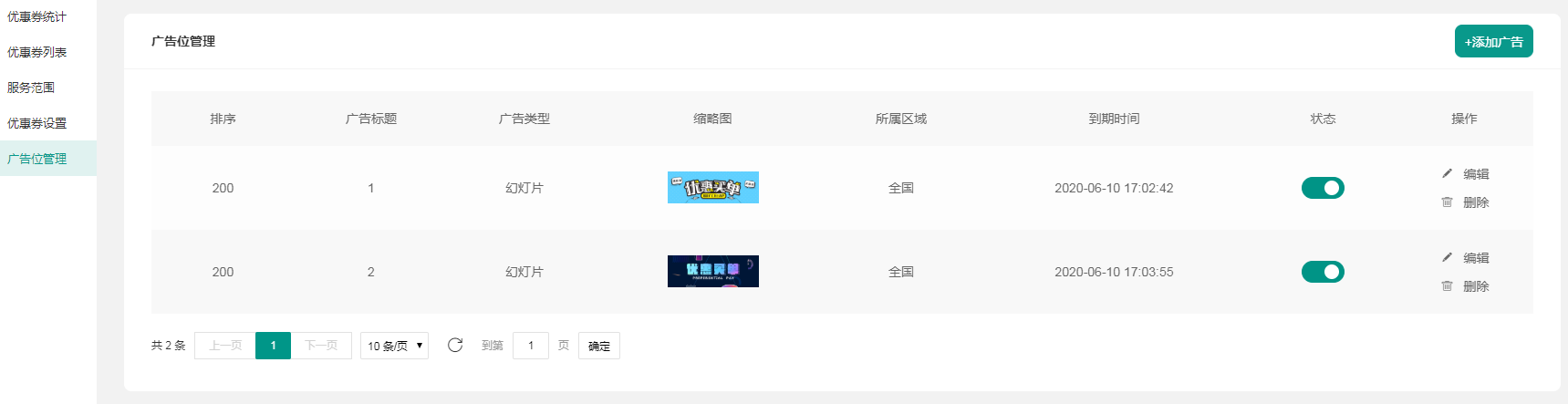 ### 优惠卷广告位  操作同上