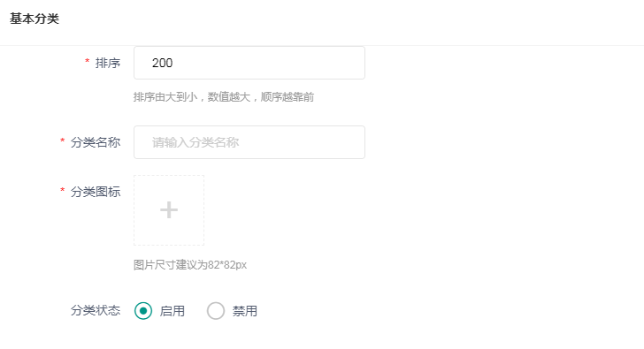 ### 名片分类  二级分类,可进行批量操作 批量开启前先点击全部展开 添加一级分类只需填写排序、名称和图标