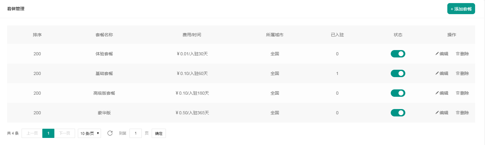 ### 名片套餐  和商家套餐同理,添加方法也是一样的