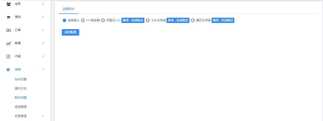 配置整个系统上传后图片的存储位置(一般为系统默认如需其他设置请查看具体操作说明) 提示:未来云店后台的远程附件配置优先级最高。