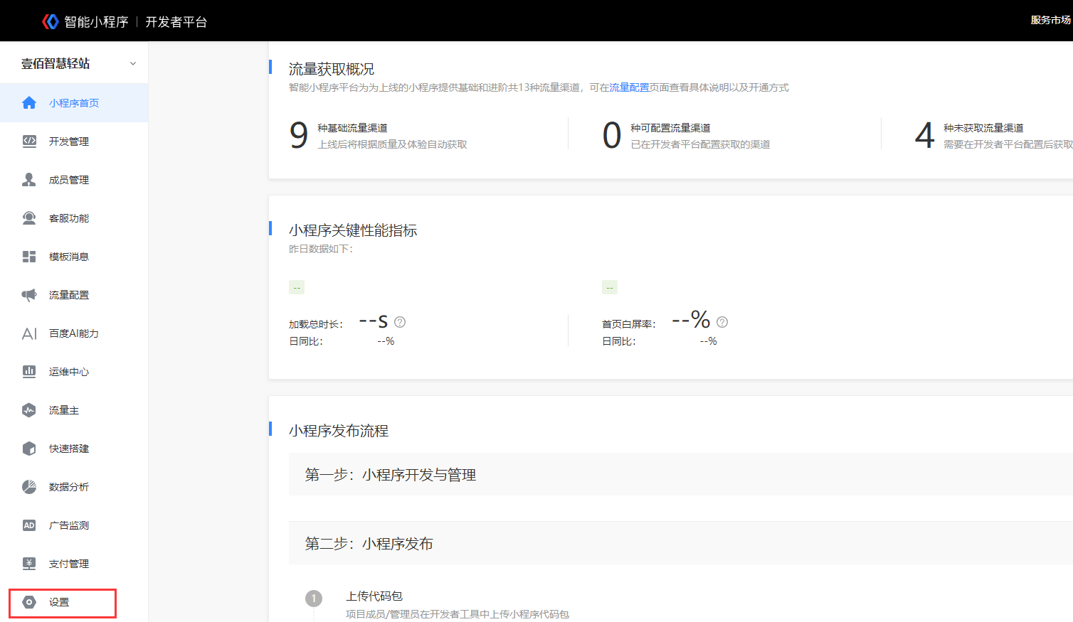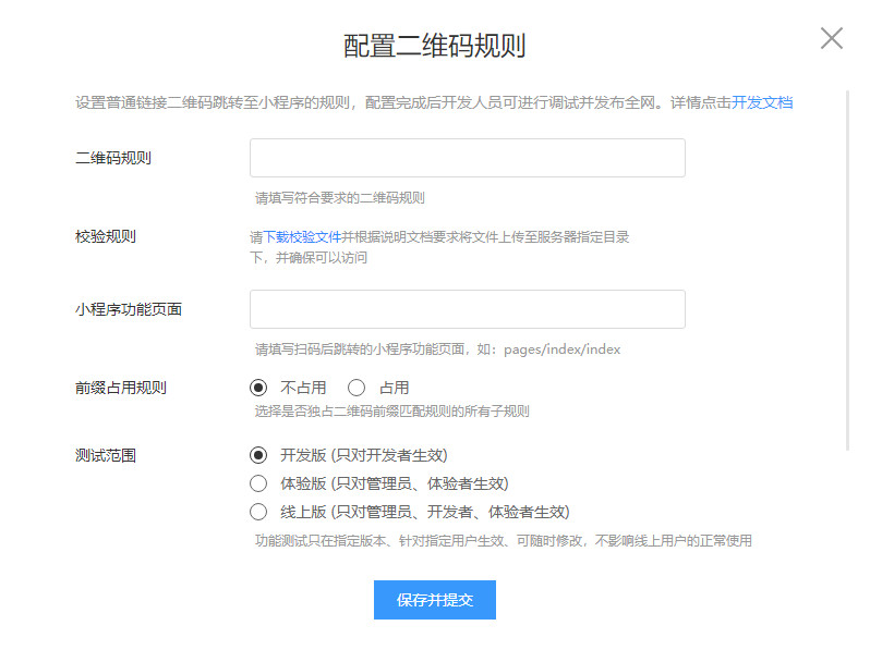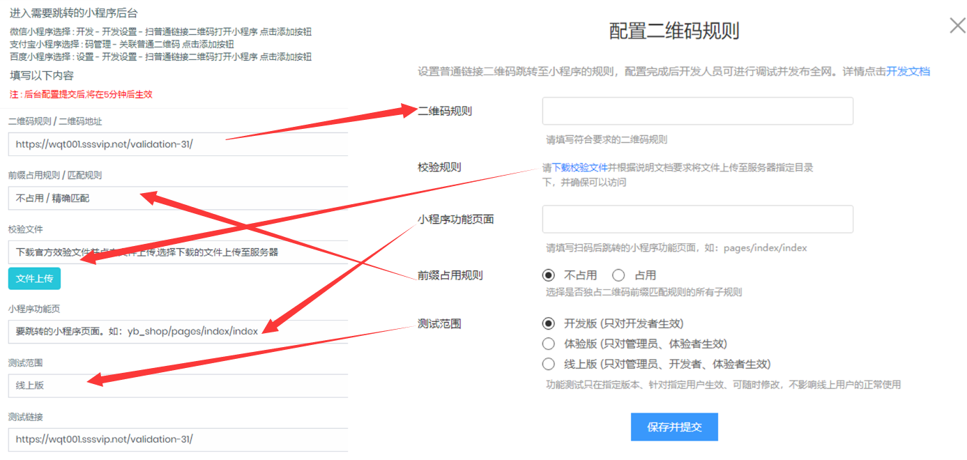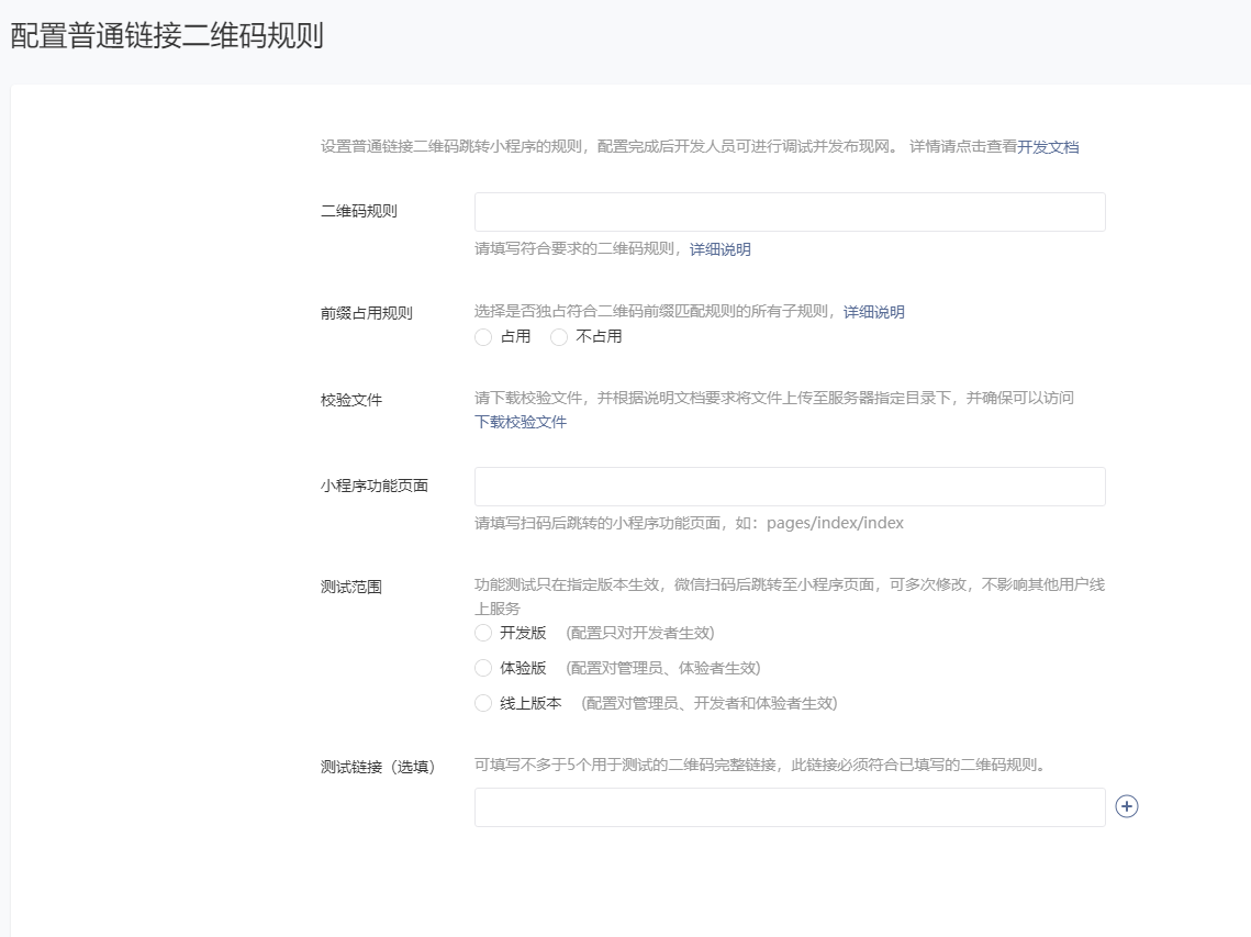## 9.4.1、一码多端 通过配置数据,使用户通过一个二维码进入多个小程序平台,方便商家推广  如何配置一码多端: 微信小程序: 第一步:选择“ 开发 ”  第二步:选择“ 开发设置 ”  第三步:找到“ 扫普通链接二维码打开小程序 ” 点击添加按钮  第四步:根据提示填写对应的相关信息。   百度小程序: 第一步:选择“ 设置 ”  第二步:选择“ 开发设置 ”  第三步:找到“ 扫普通链接二维码打开小程序 ” 点击添加按钮  第四步:根据提示填写对应的相关信息。   支付宝小程序: 第一步:选择 “ 码管理 ”。  第二步:点击 “ 关联普通二维码 ” ,点击“ 添加 ”。  第三步:根据提示填写对应的相关信息。   备注:效验规则,配置时需要先在对应的小程序后台下载,然后在轻站后台上传,上传仅需一次即可。  出现下图情况,需要点击发布,进行完成,完成后需等待五分钟后,才可以扫轻站后台二维码使用(每个小程序后台操作都需要查看下列问题)