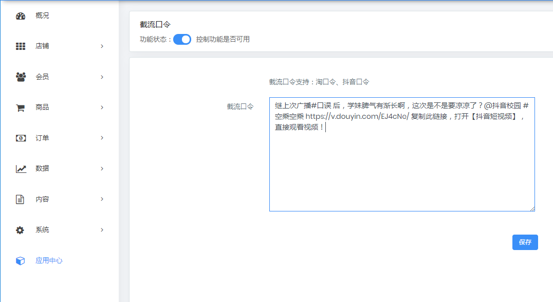 在这里开启并填写口令信息之后,用户访问小程序会自动将口令写入用户的手机剪贴板 用户打开抖音APP或淘宝APP,会自动弹出口令中的内容 如下图所示,抖音口令复制链接可获取
