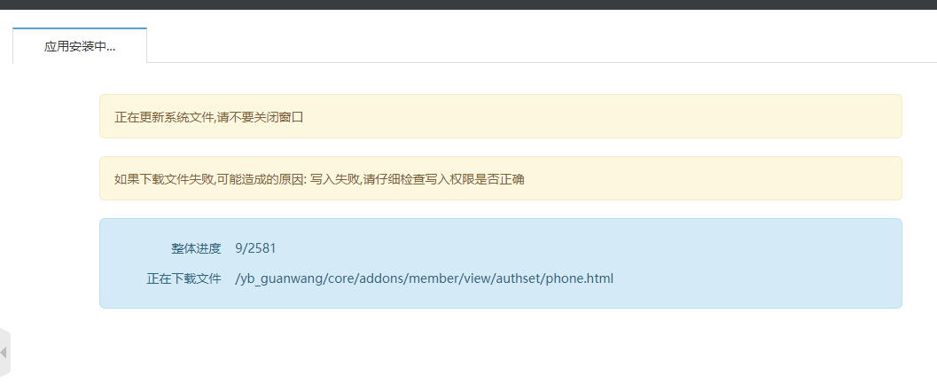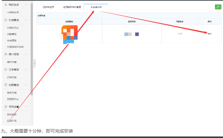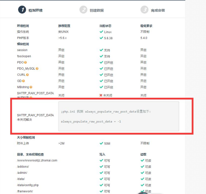 一、下载系统框架安装包,登录宝塔,新建站点绑定域名,注意php选择5.6 或7.1 ##提示:安装系统框架之前,需要确认PHP5.6/7.1是否安装最新版本的ionCube插件 ##提示:安装前需关掉站点防火墙/防篡改功能 ##提示:系统配置php5.6/mysql5.6或php7.1/mysql5.6   二、然后将安装包上传至新建站点的根目录下(解析域名、ssl域名证书配置需自行配置)  二、将压缩包解压,然后打开浏览器输入站点域名,开始安装(推荐谷歌或QQ浏览器)  三、下一步,检测站点环境及配置(如初次安装会有部分PHP配置需要调整,根据提示修改即可,也可参考文末第九段的解决办法)  四、填写数据库名、密码和数据库用户名及管理员信息,进行创建数据操作  五、系统框架安装完成。  六、使用刚才设置好的管理员账号、密码登录系统后台。  七、登录后台之后,先将系统升级到最新版本。  八、点击左侧菜单【应用升级】-【未安装应用】,点击【安装】即可(需先将系统框架更新至最新版本) 提示:一次只可看到并安装一个应用,如果购买了多个应用,请安装完一个再安装其他的应用。 如果购买了未来云店商家助手,需先安装未来云店主应用,再安装商家助手。  九、大概需要十分钟,即可完成安装  如果出现下图所示的【请先安装ionCube解密插件】,请参考文档【ionCube插件安装】(右上角搜索) 十、如果初次安装未来鸟未来云店系统,检测环境时会出现下图所示的情况  宝塔面板可以直接打开软件管理页面,找到PHP5.6,点击设置  修改PHP5.6的配置文件,找到always_populate_raw_post_data,把分号去掉,保存,重启PHP即可(windows面板的话,找到php5.6所在文件夹,打开php.ini,找到always_populate_raw_post_data,修改为always_populate_raw_post_data=-1,保存php.ini,重启WEB服务即可。)