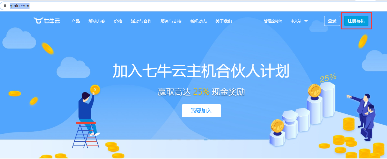 一、登录七牛云官方网站www.qiniu.com,点击右上角的【注册】按钮,填写相关信息,进行注册。  二、登录七牛云控制台,根据提示进行实名认证   三、实名认证通过之后,点击左侧的【对象存储】,进入【对象存储】控制台  四、在【对象存储】控制台页面,点击【空间管理】-【新建空间】,在弹出页面上填写空间名称,访问控制选择【公开】,确定提交。  五、点击空间名称,即可进入空间管理  六、由于七牛云默认的空间域名仅能使用30天,所以需要点击【添加加速域名】 提示:云存储绑定的域名需为全新域名(请勿绑定正在使用中的站点域名)  七、根据提示填写域名及其它信息,然后下一步,根据提示进行域名解析   八、点击【文件管理】-【上传文件】,可上传图片及视频等文件  九、返回【文件管理】,选择绑定好的域名,点击文件后面的【详情】,可复制文件的链接路径,可将mp4文件路径 复制到需要的地方。