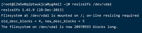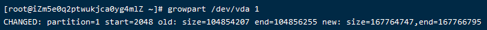 本文以阿里云linux服务器为例,讲解一下磁盘扩容操作流程 一、将服务器磁盘做一下快照(这一步必须要做,如果操作失败,还可以恢复快照)  二、在云盘列表进行云盘扩容操作,此步操作只是购买了扩容的空间,还要远程连接服务进行命令操作  选择扩容方式为【在线扩容】,设置磁盘扩容后的容量  三、使用工具远程登录linux服务器,运行命令【fdisk -l 】查看服务器磁盘空间大小  四、 运行命令【df -Th 】查看磁盘分区大小和文件系统类型。可以看到目前分区大小为50G,文件类型为ext4  五、运行命令【yum install cloud-utils-growpart】安装扩容格式化工具。 六、运行命令【growpart /dev/vda 1】  如果遇到出错信息【unexpected output in sfdisk --version [sfdisk,来自 util-linux 2.23.2] 】,可以运行一下【LANG=en_US.UTF-8】  七、运行命令【resize2fs /dev/vda1】对系统盘的/dev/vda1分区的文件系统进行扩容。  八、运行【df -h】命令查看云盘分区大小,已成功从50G扩容到80G。