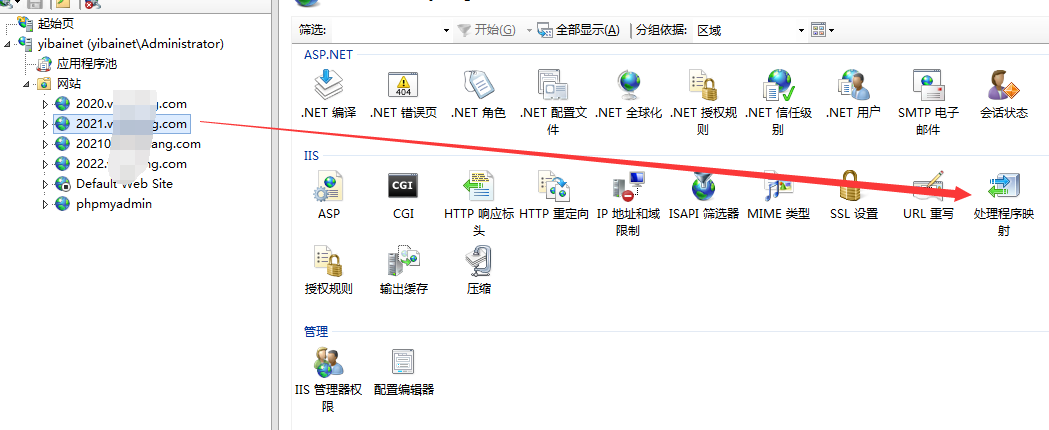 一、登录服务器,下载所需版本的windows版PHP文件,设置好extension_dir目录,开启ionCube扩展及SSL证书扩展 二、打开对应站点的【处理程序映射】  三、编辑【PHP_FastCGI】  修改可执行文件,指向新下载的PHP版本对应的文件  四、检查是否有同路径的模块映射,有的话删除之后添加新的模块映射