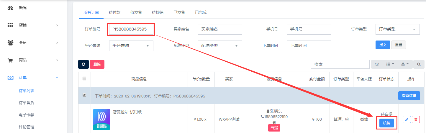 如何核销自提订单