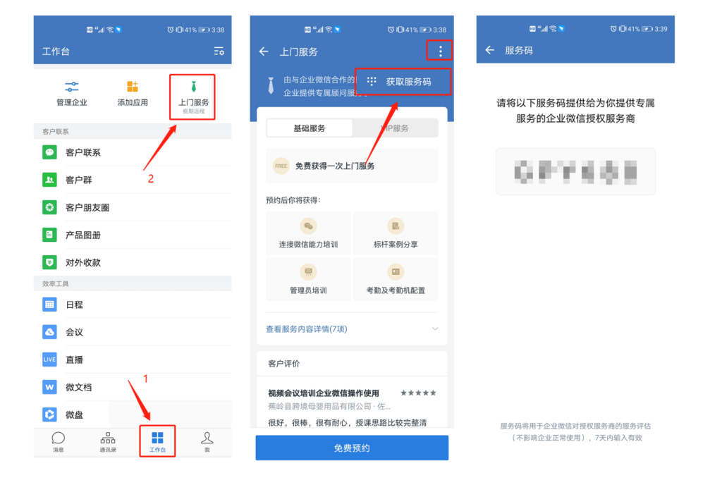 需要在【企业微信】APP端查看服务码(只有管理员有查看权限)