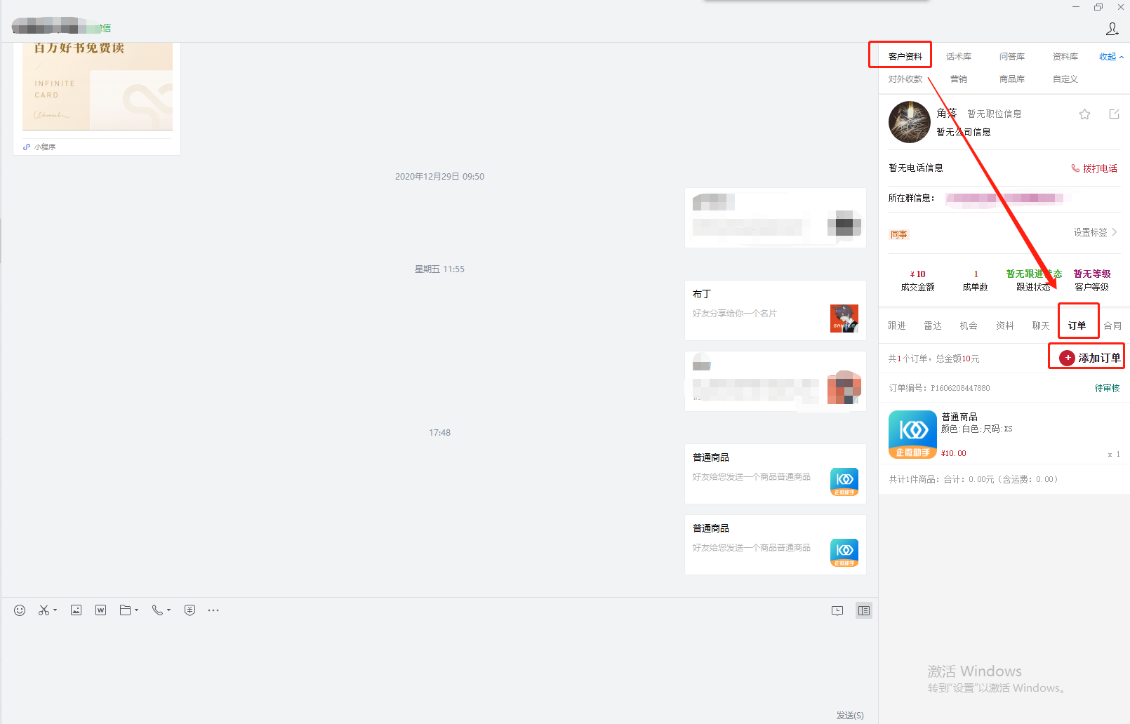 使用场景:销售人员和这个客户成交后,添加订单记录销售情况 后台可以添加订单  pc端给客户添加订单  选择商品时选择规格数量   手机端操作流程类似 员工账号需要选择下订单审核人员