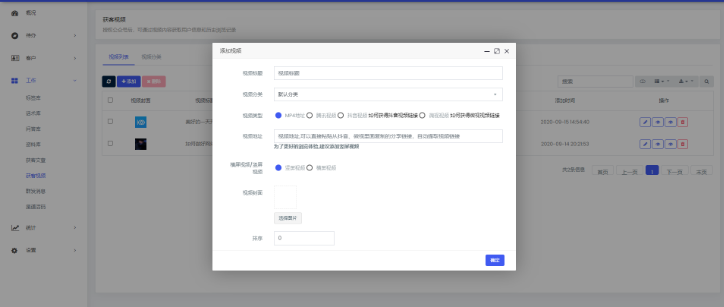 使用此功能前需要将站点成功对接微信开放平台,【设置】菜单下的公众号授权需成功授权 添加获客视频