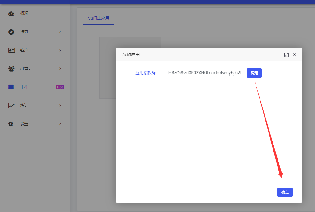 一、登录未来云店后台,打开【应用中心-企业微信SCRM接入】页面  二、选中并复制授权码  三、登录企业微信SCRM后台,打开【工作-工具-智慧门店接入】页面  四、创建未来云店应用  五、将授权码粘贴确定,即可未来云店后台的客户信息到企业微信SCRM后台