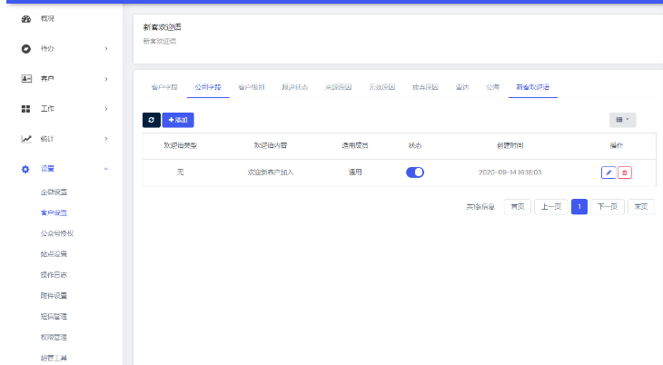 新客欢迎语是指客户第一次添加员工之后,系统自动发送的问候语。