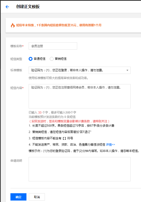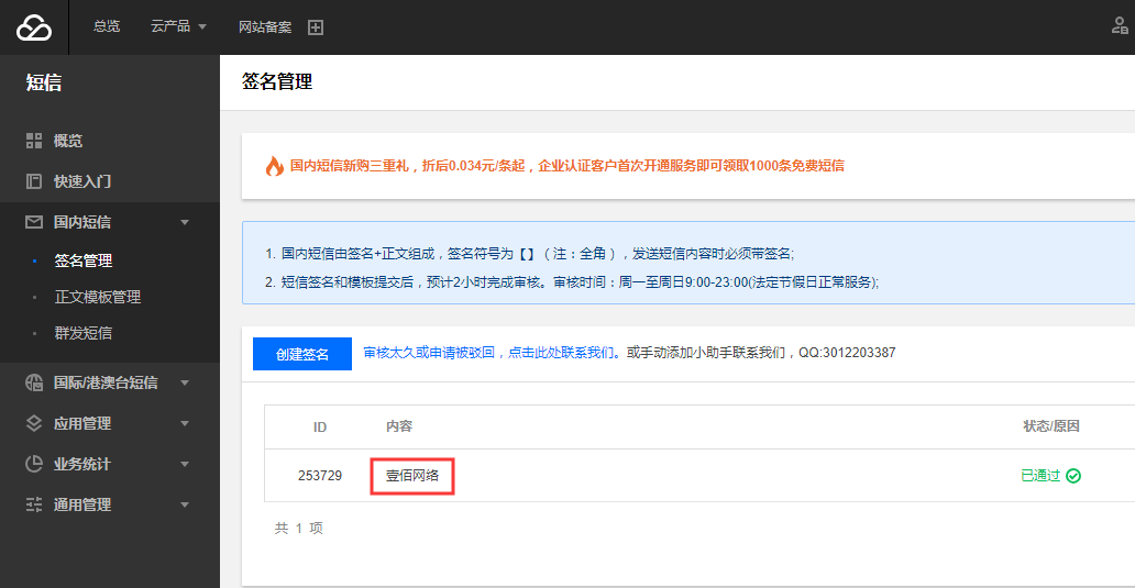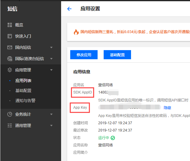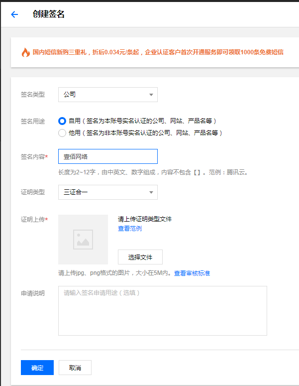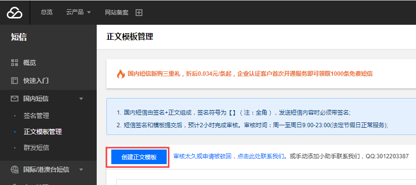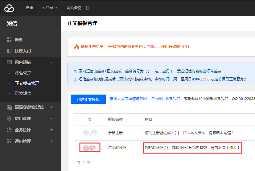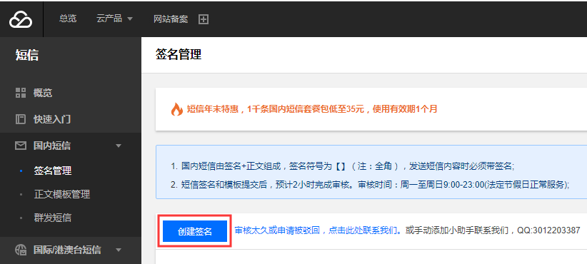 腾讯云短信配置