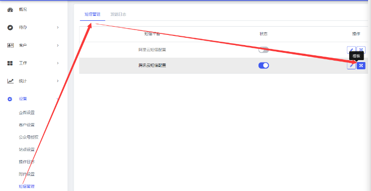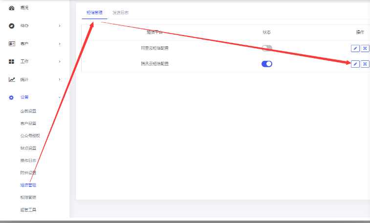 一、登录腾讯云账号,在控制台首页搜索“短信”或是下方的“短信”快捷方式,登录短信服务控制台。(需要提前购买短信服务套餐)  二、【应用管理】-【创建应用】,获取应用AppId 、AppKey    三、【国内短信】-【创建签名】,腾讯官方审核通过之后,签名才可以使用    四、【正文模板管理】-【创建正文模板】,可选用系统的标准模板 ,腾讯官方审核通过之后,短信模板ID才可以使用    五、等签名和模板审核通过之后,将AppID、AppKey、短信签名复制到后台的短信配置页面   六、短信模板ID配置在这里  开启短信模板,并填写模板ID