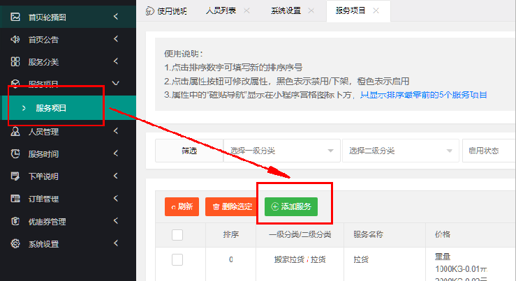 服务项目多规格使用说明