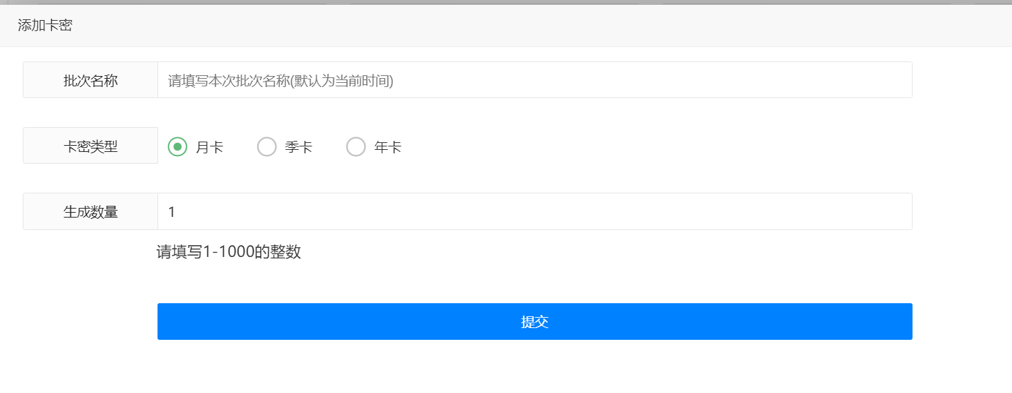 卡密功能使用说明(会员月卡/季卡/年卡/) ## 一、 版本要求 请将未来鸟引擎更新到2.6.3以上,模块版本更新到4.0.4以上 ## 二、 后台设置 在会员管理-会员参数设置里 设置好会员折扣比例 会员协议(可写入领取方法,使用说明等) 会员协议里不要体现充值 购买等字样(有这些字样的会被认为是虚拟支付,审核不过),建议写 联系客服领取卡密等  ## 三、 卡密生成 点击卡密管理 添加卡密  填写批次名称方便记忆(不填写的话会默认填写日期时间)卡密类型 一次生成的卡数量  ## 四、 卡密导出  导出文件请用excel打开 ## 五、 绑定卡密 绑定入口在 项目详情和个人中心均有绑定按钮 ## 六 、 会员折扣与优惠券 服务项目先计算出会员折扣,再进行优惠券计算 ## 七、 技师结算 技师是根据会员折扣后的价格进行结算(与优惠券无关) 比如服务项目100元,会员折扣95%,优惠券10元, 平台扣除技师10% 技师获得金额= 100*95%*(1-10%)= 85.5元