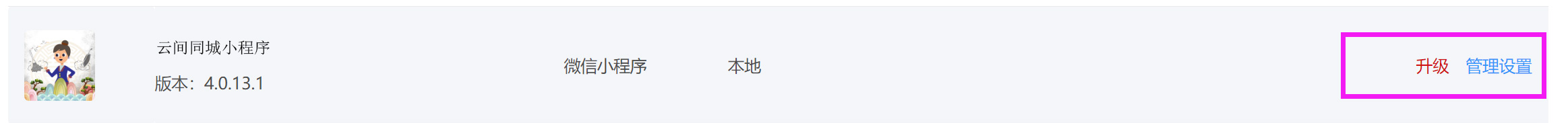 上门服务小程序更新方法 一、更新通知 二、打开自己的未来鸟引擎站点,点击右上角“控制台”  三、点击“应用管理”  四、找到“家政上门服务小程序”,点击升级  五、更新完成后,进入小程序平台  六、提交版本审核,根据未来鸟引擎不同的版本,此处可能显示“下载程序包”或者“上传微信审核”  七、管理员扫描二维码后,进入官方小程序后台,版本管理,提交审核,审核通过后,发布版本。