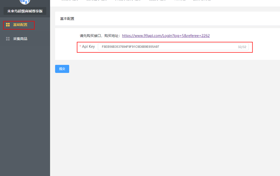 ### 1.点击下面网站进入注册或登录 https://www.99api.com/Login?log=5&referee=2262  ### 2,复制API KEY  ### 3.返回采集助手填写API KEY