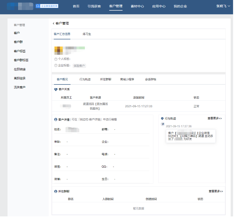 您好,欢迎使用未来鸟电商SCRM系统 未来鸟电商SCRM基于企业微信帮助企业打造集客户增长、客户运营、客户转化、客户管理于一体的私域增长闭环系统 覆盖企业客户运营的全生命周期,实现客户数增长、销售额增长 请您严格按照下方流程进行配置,如有任何问题,请联系您的专属客服。 ### 功能介绍 老板/管理员/运营可在未来鸟电商SCRM后台,点击客户管理—客户,查看企业私域流量池的客户信息。 ## 客户信息操作流程 ### 1.根据相关信息查找客户 可通过客户名称、标签、添加人、添加时间进行查找,此功能可帮助企业快速定位:客户所属成员、所属标签、添加时间及添加渠道  可点击客户头像或者名称进入查看客户详细信息