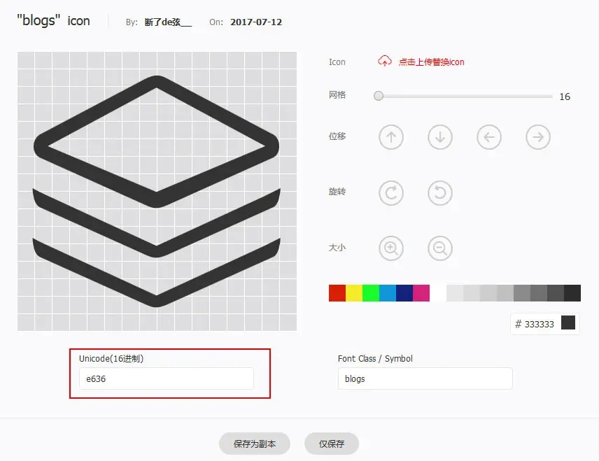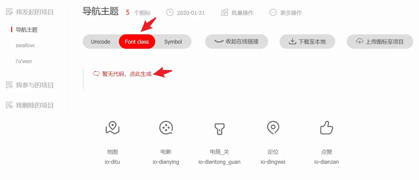 。 ### 按需使用 FontAwesome不论你使用几个图标字体,都需要完整加载字体库,而Iconfont可以按你所需定制图标字体库,并且可以根据你的需要随时更改,可以直接将生成的字体链接添加到主题中。 介绍完阿里巴巴矢量图标库的优势,下面开始具体使用方法: ### 一、首先登录阿里巴巴矢量图标库 [阿里巴巴矢量图标库](https://www.iconfont.cn/) 目前只支持GitHub 和新浪微博账号授权登录。 ### 二、新建图标库项目 登录后,点击上面菜单中的图标管理→我的项目,点新建项目图标新建一个图标项目:  在弹出的窗口中输入相关信息,项目名称任意。 需要注意是: FontClass/Symbol 前缀和Font Family两项中必须输入:**io**,前后不能有空格。如图:注意前缀加中横线  ### 三、向图标项目中添加图标 点击菜单上的图标库,进入一个图标库(注:主题不支持多色图标)。 用鼠标选择一个图标并点击上面的购物车图标,将图标添加到临购物车中,如图:  已添加过的图标,会有个虚线框提示,右上角购物车图标上的数字,是在购物车中待添加到项目中的图标个数。 选择添加完图标,点击右上角的购物车图标,将添加在购物车中的图标添加到相应该项目中:  点击生成代码:(**以后每次添加新图标都要重新生成代码**)  ### 四、加载外链图标字体库 复制代码:  进入导航应用主题设置选项→其他功能选项卡,将复制的图标字体库链接添加到主题选项中:  最后不要忘记保存一下主题设置。外链字体库支持https。 **如果再次添加图标,重复上面的步骤。** ### 五、给菜单项目添加图标字体 添加图标字体需要将菜单高级属性打开,登录应用后台→外观→菜单,进入菜单编辑管理页面,打开右上角的”显示选项“,勾选其中全部的“CSS类”,如图: 返回已建好的图标字体库页面,用鼠标复制图标代码,例如:io-zhuti  添加到菜单项目的CSS类中,前面必须加一个io,最终如:io io-zhuti,如图:  最后不要忘记保存菜单。 分类目录添加到图标代码到下图  正常主题只有菜单可以添加图标字体,漂亮的图标,会吸引浏览者去点击。如果动手能力强,你也可以修改主题模板文件,替换添加主题默认的图标字体。 Iconfont图标字体,有个问题就是图标字体大小不一,同一个字体库的也是如此,还好Iconfont提供了非常方便的编辑工具,可以自己调整大小、旋转等编辑操作。 ==注:由于Iconfont图标图标库众多,很多图标字体的代码名称都是相同的,可能会与主题默认的图标冲突,如果添加自定义图标后,发现某个图标显示为另外的其它的图标,就需要修改自定义图标代码名称:== 其中Unicode(16进制)代码,比如下图这个图标的Unicode代码 e636,就与主题默认的新浪微博的图标相同随便改一个,但必须是字母e开头6以后的数字四个数字和字母组合,如图:  不要把胡乱地把一些图标都弄到字库中项目中,使用哪个就添加哪个,不然会引起更多的字体名称冲突,而且会在一定程度上影响加载速度。 每次添加或者编辑了图标名称不要忘记点击“`更新代码`,并把新的字库链接重新添加到主题选项中。