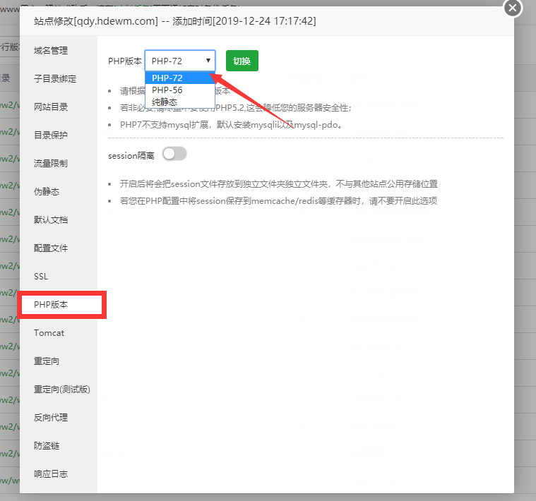 ## 为了不影响之前服务器上模块的运营,或者有PHP扩展冲突的,需要设置个7.2专属域名 通过宝塔操作: 假设你的 [授权域名是:www.xxx.com](http://xn--www-x69dv7swlg1yp53j36cr82d.xxx.com/)(使用的是PHP5.6或其他环境,这个站点不用修改) 1. 解析个二级域名 ,例如cloud.xxx.com到服务器; 2. 在宝塔新建站点,站点目录选择你原来的未来鸟引擎目录,使用PHP7.2的环境,并配置ssl,这样操作之后,[通过www.xxx.com和cloud.xxx.com](http://xn--www-503jln.xxx.xn--comcloud-1c2n.xxx.com/),都能访问你的未来鸟引擎; 3. [www.xxx.com](http://www.xxx.com/)(PHP5.6环境),可以通过这个域名安装数字云店模块,更新模块,管理未来鸟引擎其他模块;[cloud.xxx.com](http://cloud.xxx.com/)(PHP7.2环境),用来登录管理数字云店模块。 4. 如需帮助,请在售后群联系客服;项目较紧,开发人员正在全力开发系统,如需协助安装配置环境收费300/次,多谢理解。