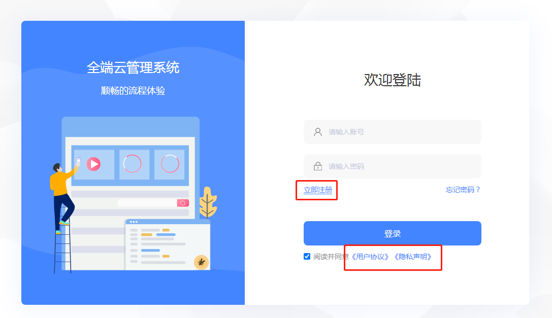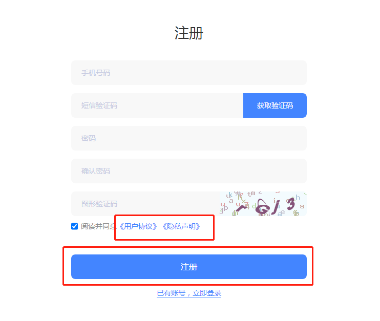 ## **注册** **【功能介绍】** 系统用户注册账号的功能设置; 注册设置,包含:注册功能是否启用、用户注册时短信验证码是否启用、注册用户的试用天数设置、注册用户的可支持使用的项目选择、注册用户可创建项目数量设置、注册用户创建项目所属的功能套餐; **【隐私协议与用户协议】** SAAS平台官网用户登录注册用户协议与隐私声明、SAAS平台官网底部用户协议与隐私声明;  ### **注册-网站页面展示**    ### **隐私协议与用户协议** 【网站-关于-基础信息-公司名称】配置后,"用户协议"、"隐私声明"标题和协议内的内容呢弄才会显示公司名称,断句才会完整;