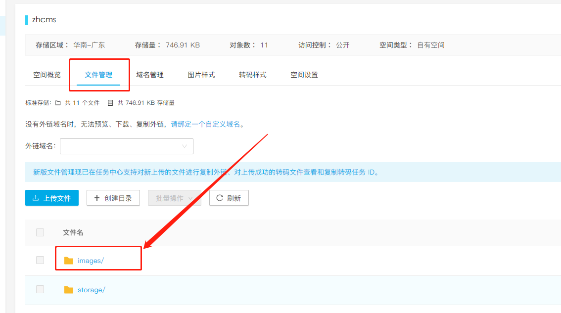 当配置了OSS后发现前端页面图片都不显示了,此时需要[点击这里](https://qiuniu.wln.blue/down/images.zip "点击这里"),下载素材文件包,把下载下来的的images目录下载下来使用相关OSS的工具上传到您配置的oss根目录即可  以七牛OSS举例,上传后保持如图所示即可