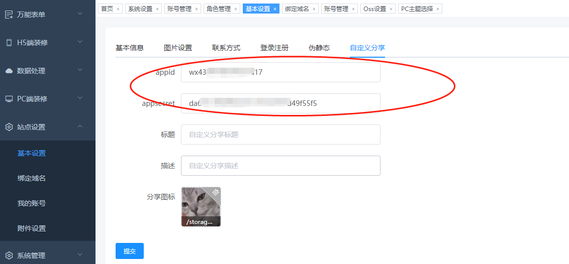 1、找一个公众号,该公众号务必接入公众号接口(认证服务号),然后在后天填写公众号appid及appsecret  2、借权的公众号后台JS接口安全域名处,必须填写您客户网站域名(当前网站分享出去想展示内容的域名)