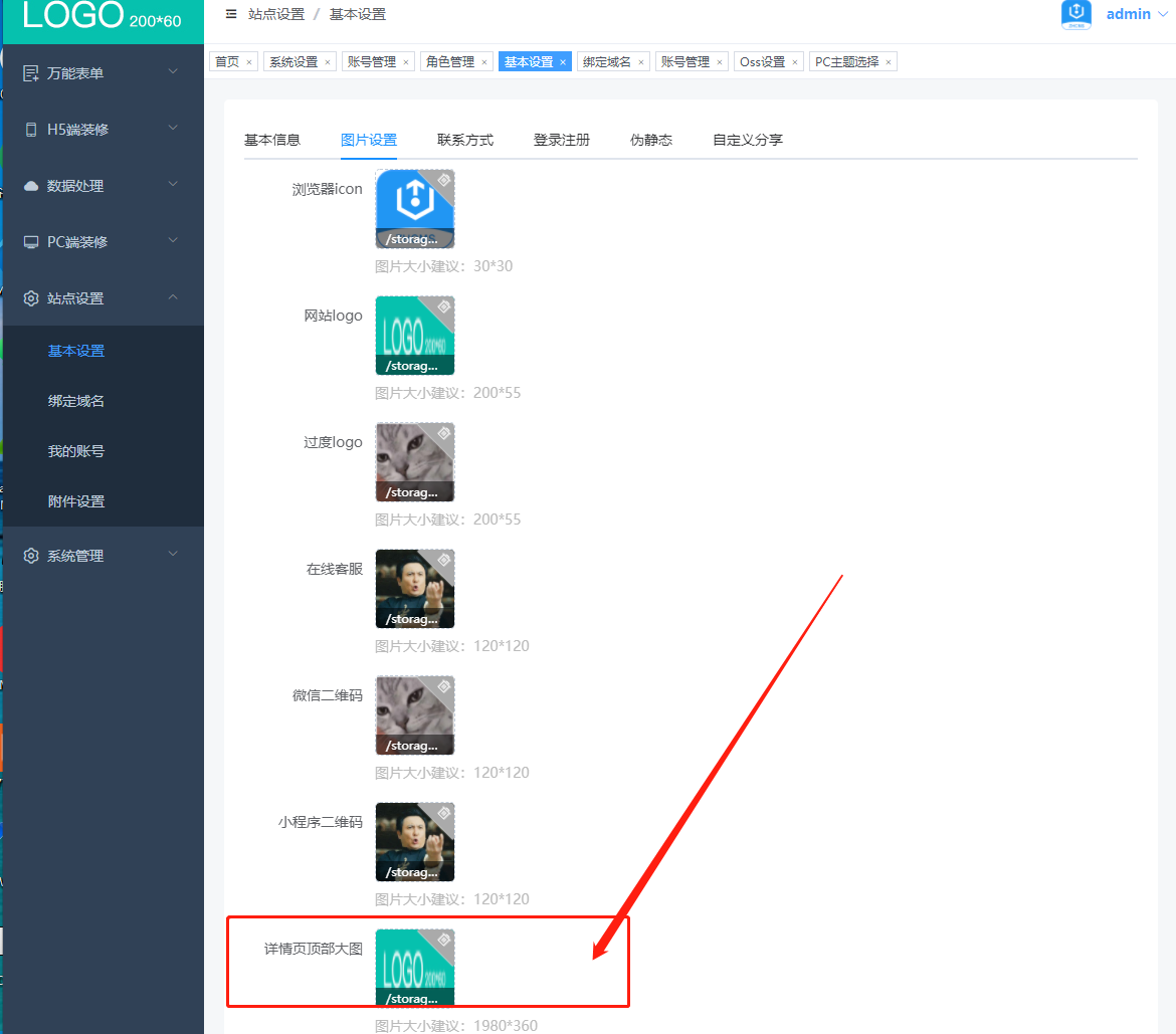 > 站点设置-基本设置-图片设置-详情页顶部大图