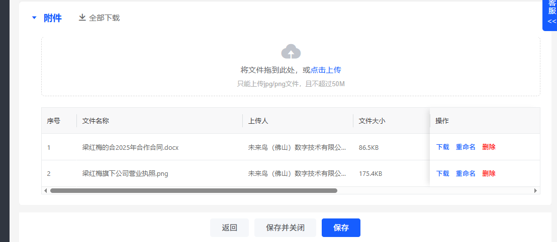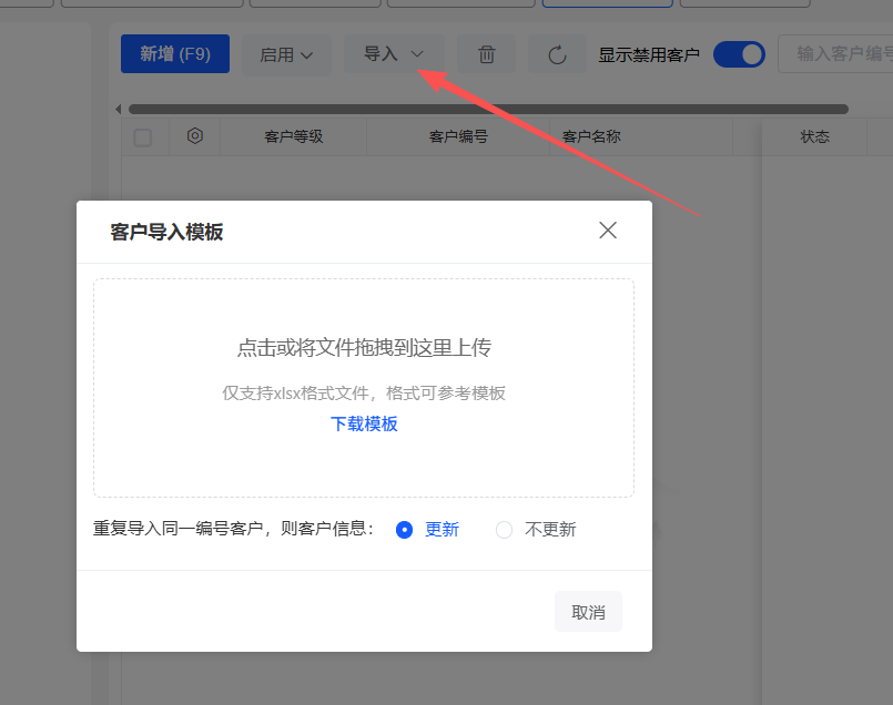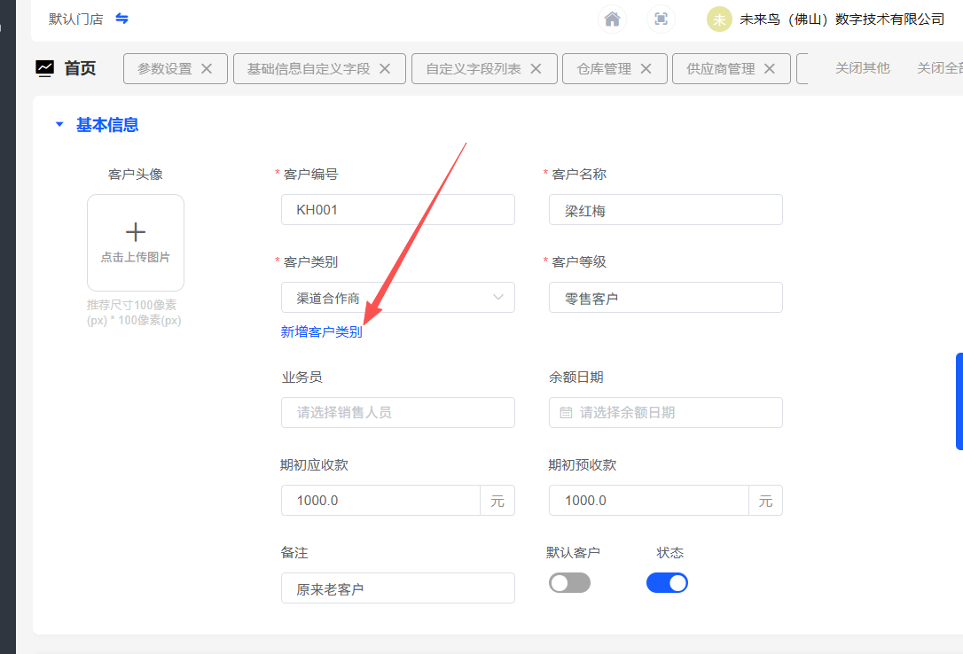 在这里,你可以录入客户资料 ### 导入和导出  正式上用的时候,可以在可以管理中批量导入和导出客户。 导入客户请严格按照系统提供的模板XLSX来导入 **==导入特别注意事项==** ``` 1 不能修改模版格式(包括表头名称),导入时请删除‘下表录入正式数据’一行及以上的所有提示和示例数据。 2 客户等级中的“零售客户、批发客户、VIP客户、折扣等级一、折扣等级二”分别对应商品的“零售价、批发价、会员价、折扣率一、折扣率二”,开单时选择客户后再选商品,可带出对应的价格。 3 余额日期若不填写,则默认为系统启用日期。 4 一个客户可同时导入多个联系人,如示例中的K004星川温控。 5 若不录入联系人仅录入电话,则无法导入,手机号支持国际手机号,如果是国际手机号,区号与手机号中间保留一个英文空格(+886 12345678),大陆手机号不需要保留区号。 6 销售人员使用系统已内置的职员编号。 ``` ### 新增录入  客户类别可以在这里自定义设置和,支持客户类别二级分类  财务信息可以输入他的开票信息  联系人信息中,请完善客户信息  附件中可以上传和客户相关的合同,图片等资料