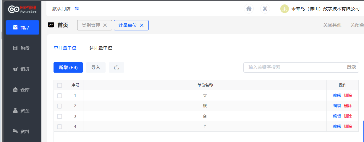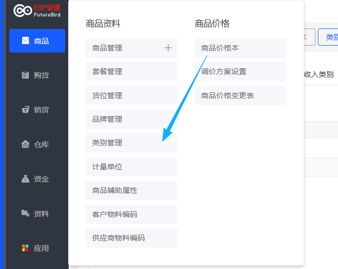 #### 辅助资料 辅助资料是对基础资料的补充,包含基础资料的类别管理、计量单位、结算方式、辅助属性和客户物料编码等。 ##### 类别管理  统一管理多种对象类别,包括:客户类别、供应商类别、商品类别、支出类别、收入类别、属性类别,建议正式进行业务前维护类别,也可以直接在对应页面新增界面新增类别。  类别配置基本类似,这里不多做说明,按照系统提示操作即可; ##### 计量单位  1. 【资料】→【计量单位】,可设置单计量单位和多计量单位,新增的计量单位可在编辑商品的时候调用。 2. 点击计量单位列表的修改图标,可打开编辑界面进行修改;点击删除图标可删除计量单位;若计量单位已在商品档案中被使用过,则不能被删除。 ##### 辅助属性  1. 【资料】→【辅助属性管理】,可预设商品辅助属性(如颜色、尺码),实际按照系统提示操作即可。 1. 点击属性分类(如:颜色、尺寸)的图标,可设置该属性分类的具体属性值。 ##### 客户物料编码 1、【资料】→【客户物料编码】,点击新增,选择客户和商品,录入客户的物料编码。  2、客户物料编码用于:同一个商品,企业和客户有不同的编码规则;因此需要记录客户对该商品的编码,在打印销货单时,方便企业与客户查看和对照。 ##### 供应商物料编码 1、【资料】→【客户物料编码】,点击新增,选择供应商和商品,录入供应商的物料编码。