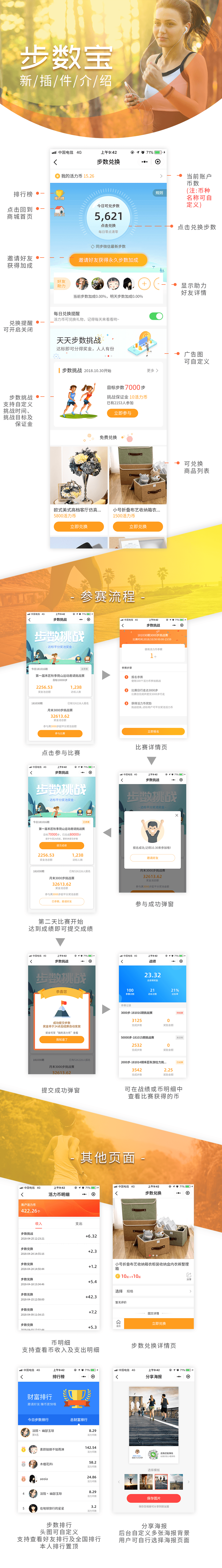 ### 关于步数宝  ### 步数宝  ### 基本配置 #### 基本配置 #### 基础配置 - 支持单独设置支付方式 - 支持单独设置发货方式  #### 步数宝设置 - 进入步数宝应用设置基本设置,邀请好友步数加成:邀请好友之后 你自己的每天步数乘以(1+邀请用户比率x邀请好友的数量)。例如设置千分之10 ,邀请了10个好友,就是每天的步数乘以(1+0.01x10)。  #### 自定义设置  ### 用户列表 #### 用户列表  - 支持快捷修改活力币数  - 支持一键清空活力币 ### 流量主 #### 流量主列表  #### 添加流量主 - 去微信公众平台-小程序后台开通流量主,将广告id添加到我们后台   ### 步数挑战 #### 步数挑战  - 可以添加步数跳转活动,一个日期(既一天)只能发起一个活动,活动必须要提前报名,报名缴纳指定数量兑换币作为奖金池奖金,当天所有报名玩家,自行选择提交成绩,达标提交之后就不能提交,活动结束后,系统自动将奖金池奖金平均发放给所有成绩达标的玩家。 - 活动不能修改删除,可解散,解散自动返还报名费  ### 商品列表 #### 商品列表  #### 添加商品  - 只能信息获取选择商品 - 不再支持单独添加预约商品,所有的商品都从商城:商品管理-->商品管理里添加 - 商品名称、原价不支持修改 - 售价为0,则该商品可以用纯活力币购买  - 别的设置与商城的一致,可以修改 - 注意:活力币可以设置为0  ### 轮播图 #### 轮播图  #### 点击添加轮播图  - 点击开启编辑  - 添加轮播图  - 支持的跳转链接  ### 订单管理 #### 订单列表