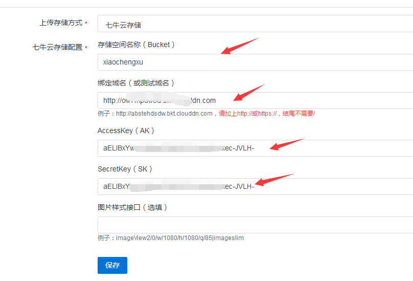 ### 七牛云 #### 七牛云配置流程: 1、申请一个七牛帐号-https://www.qiniu.com/ 2、新建对象存储  选择公共空间  3、获取AK跟SK   4、获取域名,点击对象存储,懂的人可以设置绑定域名  5、将所有信息填写到商城后台:商城管理=》上传设置