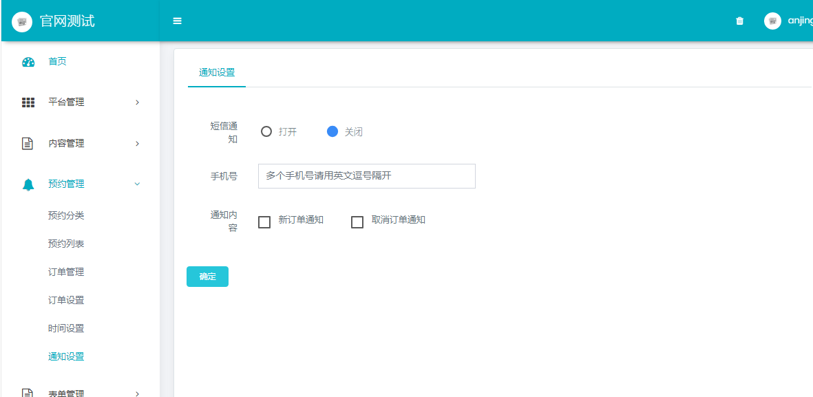 ### 4.6、通知设置  此功能主要用于有用户在小程序端添加预约新消息后商机可收到信息提醒。