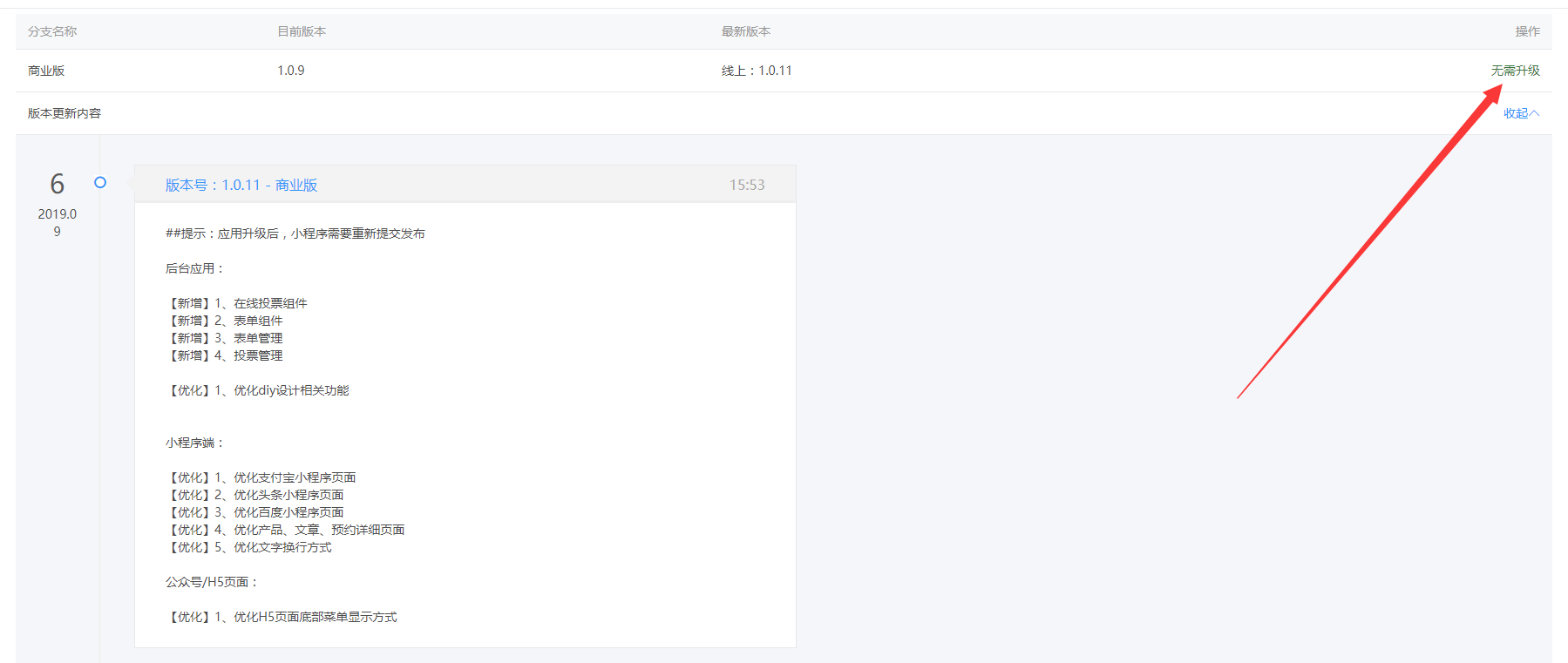 在未来鸟引擎后台“应用管理”页面能看到需要升级的提示,但是打开升级页面时却提示“无需更新” 具体操作:将未来鸟引擎升级至最新版本,然后点击右上角的“更新缓存”即可。