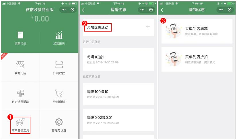 微信收款商业版商户如何使用营销工具? 微信收款商业版为商户提供了自主配置营销优惠活动的能力,只需管理员在微信收款商业版小程序【商户营销工具】中点【添加优惠活动】,按实际需求完成活动配置,即可生效活动(更丰富的优惠活动与营销玩法将会持续更新上线),并可根据你的活动配置自动生成精美官方海报以供下载 。