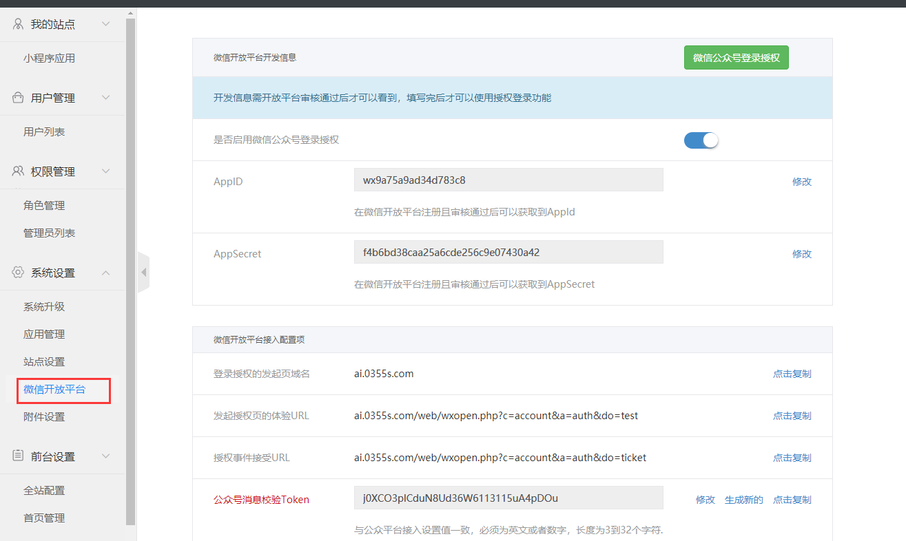 点击“微信开放平台”,右侧不显示开放平台的界面。  解决方案: PHP 没装mcrypt扩展 需要安装下