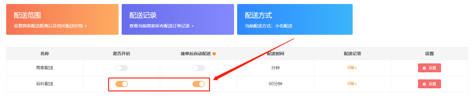 配送相关设置