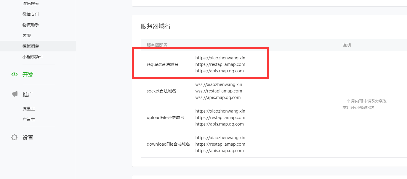 ### 小程序页面一直在加载 #### 出现这样的情况一般是腾讯key的问题 1. 没有将apis.map.qq.com和restapi.amap.com两个网址添加到服务器域名当中  #### 2. 腾讯key申请的有问题,申请地址http://lbs.qq.com/qqmap_wx_jssdk/index.html;请严格的按照下方配置。