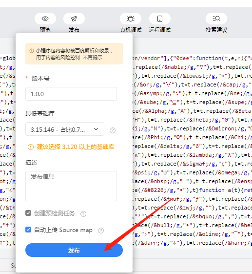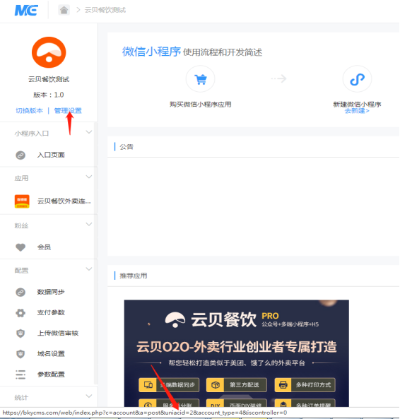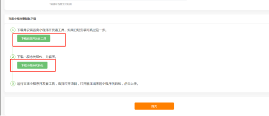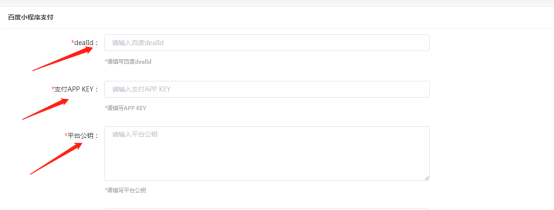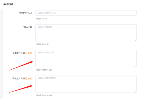进入百度小程序后台 点击开发管理->设置->开发设置  复制后分别填写到餐饮端后台  点击运营中心->支付管理->支付设置  复制后分别填写到餐饮端后台  下载openssl https://www.openssl.org/source/ 安装后打开  输入genrsa -out rsa_private_key.pem 1024 回车 再输入 rsa -in rsa_private_key.pem -pubout -out rsa_public_key.pem 回车 Openssl运行目录下会生成两个文件  打开rsa_pubilc_key.pem文件 复制中间内容 头尾不要   复制到开发者公钥提交保存  支付回调地址: https://www.b-ke.cn/addons/bk_cy/payment/wechat/baidunotify.php?uniacid=3 退款回调地址: https://www.b-ke.cn/addons/bk_cy/payment/wechat/baidurefundnotify.php?uniacid=3 退款审核地址 https://www.b-ke.cn/addons/bk_cy/payment/wechat/baidurefundnotify.php?uniacid=3 打开刚刚生成的两个文件 复制rsa_pubilc_key.pem 全部内容到百度支付公钥 复制rsa_private_key.pem 全部内容到百度支付私钥  然后添加后台域名和定位域名apis.map.qq.com   下载百度开发者工具安装 再下载百度安装包,然后解压  打开开发者工具,点击导入项目 项目名称填下,项目目录选择yb_yc目录即可  Appid复制百度小程序的appid  打开之后,点击  搜索Siteroot 更换域名和uniacid  网址替换成自己的网址 uniacid填写未来鸟引擎后台的uniacid 鼠标放在管理设置会显示   提交审核即可