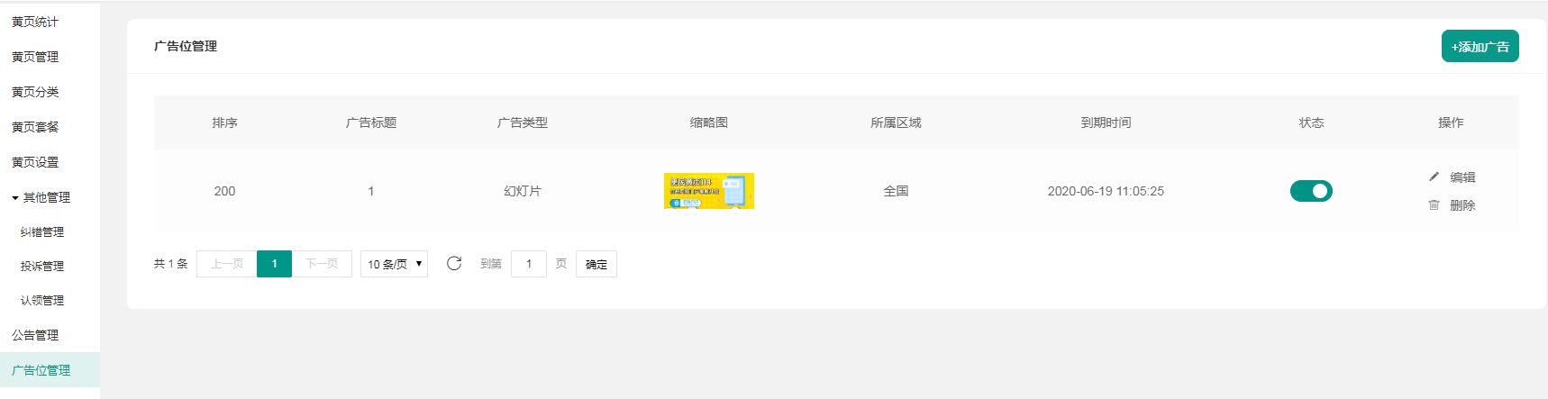 ### 黄页广告位管理  跟其他地方的广告位一样,显示在黄页页面